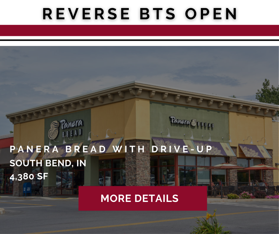 Sansome acquired a Steak n Shake under a short-term lease. The asset ultimately was vacated by Steak n Shake. Sansome negotiated a termination, entitlement, and long-term lease with Panera Bread, a 2,000-store national fast casual restaurant operating throughout the United States and Canada. The new restaurant plans to open in early 2021.